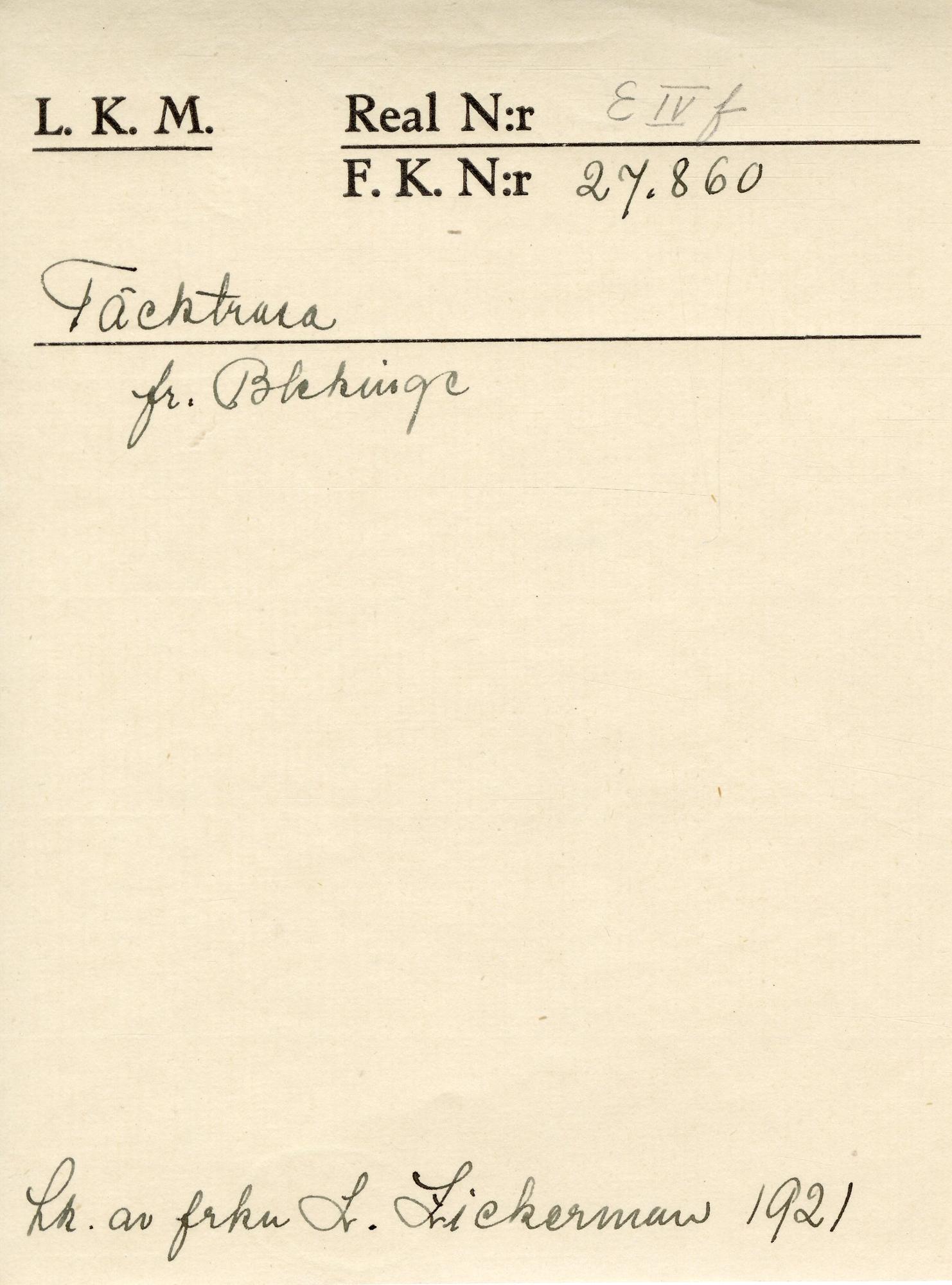 • Förvärvad 1921 av Zickerman Lilli.