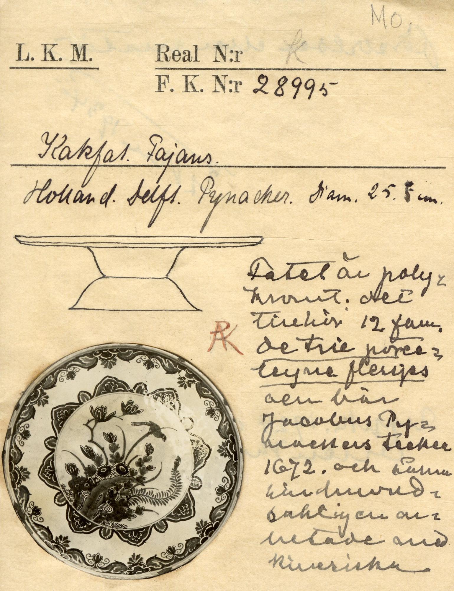 "Smörfat med japansk mönster i rött, blått och grönt, förmodligen av Adriaen Pijnacker, Delft 1689-1707." Sven T Kjellberg, Kulturens årsbok 1935, s. 46