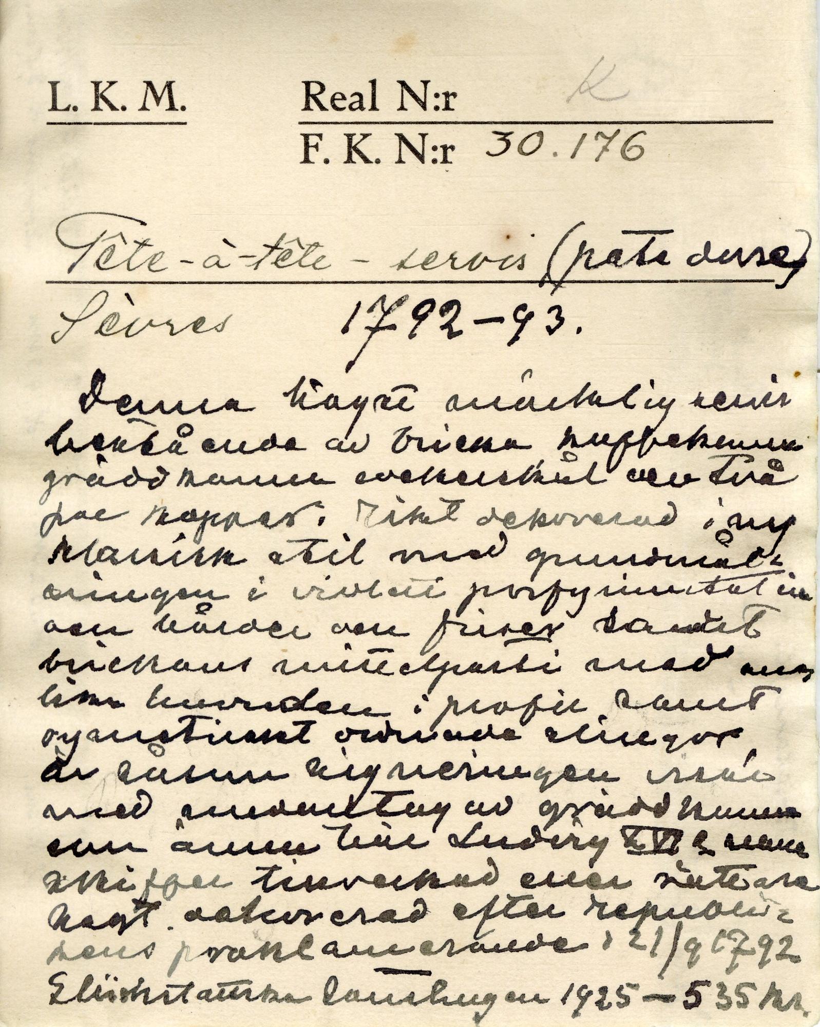 • Tillverkad i Paris, Frankrike av 1770-1789.