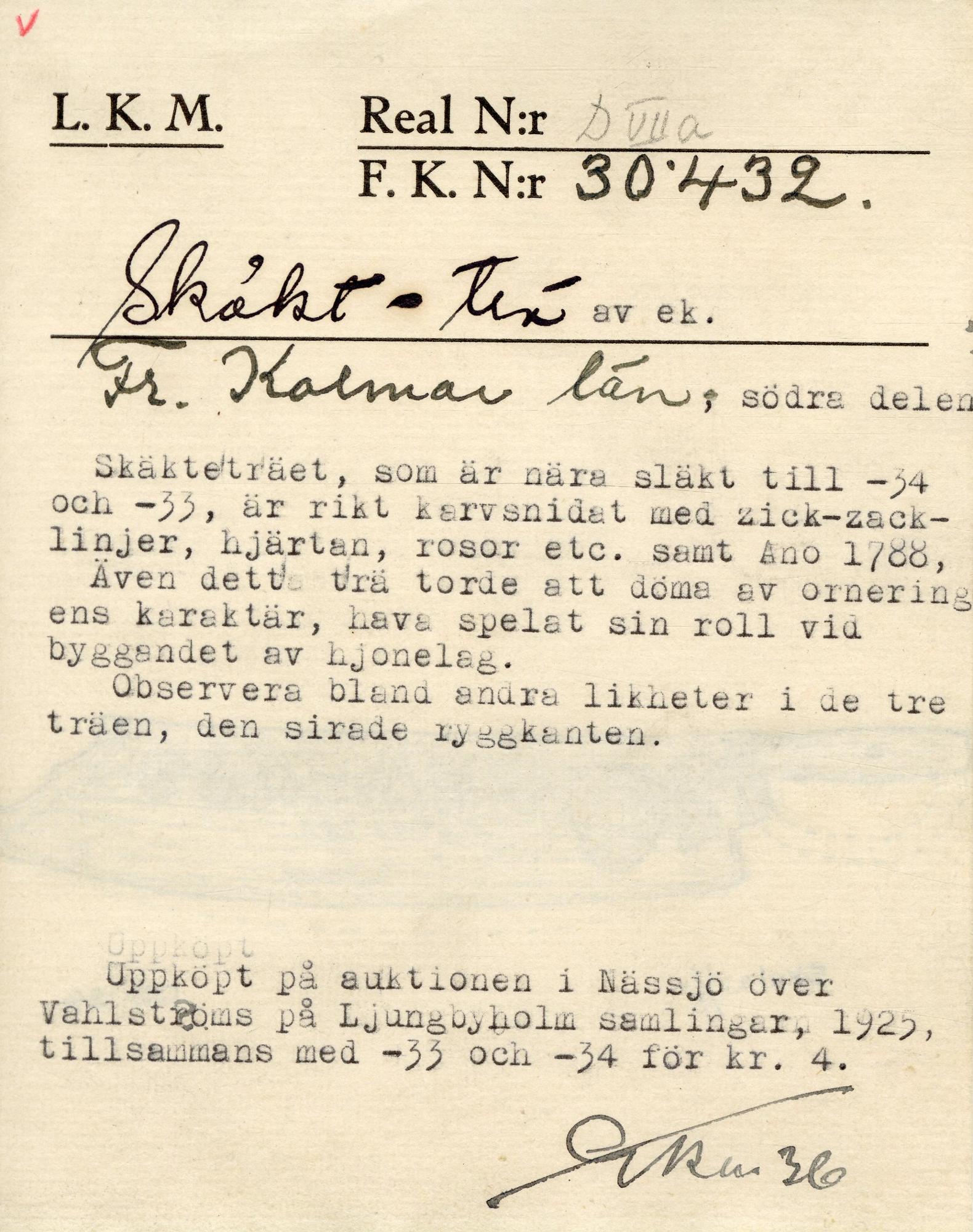 • Förvärvad 1924-10-24 av Wahlströmska auktionen i Nässjö.