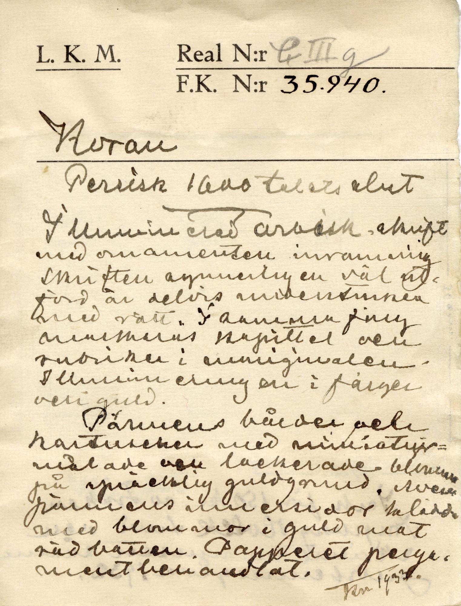 Förvärvad 1932 av Holck Ingeborg Maria Cornelia.