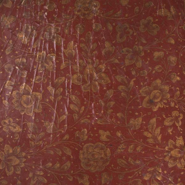 Illuminerad handskrift. Pärmarna är utförda av skinnklädd papp, som lackerats i rik blomsterdekor mot guldgrund. Även pärmarnas insidor är lackerade med gyllene bladslingor mot röd bakgrund. Skriven b...