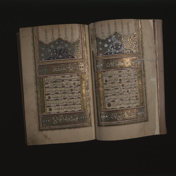 "Koran, första uppslaget. Persisk illuminerad handskrift från 1600-talet, folio." Kulturens årsbok 1959, Kjellberg Sven T, Islamiskt, s. 70-115, bild 3 s. 77.
