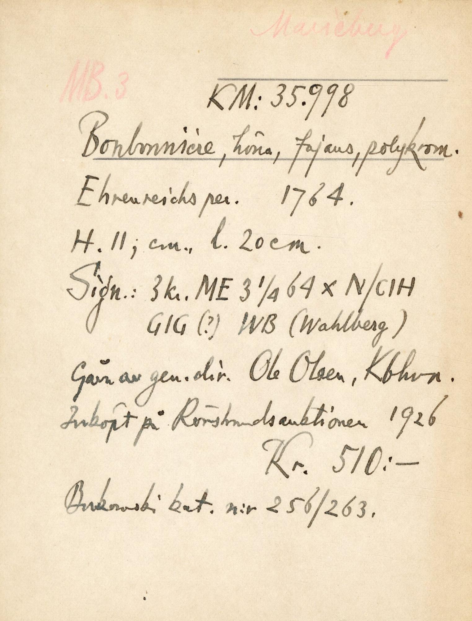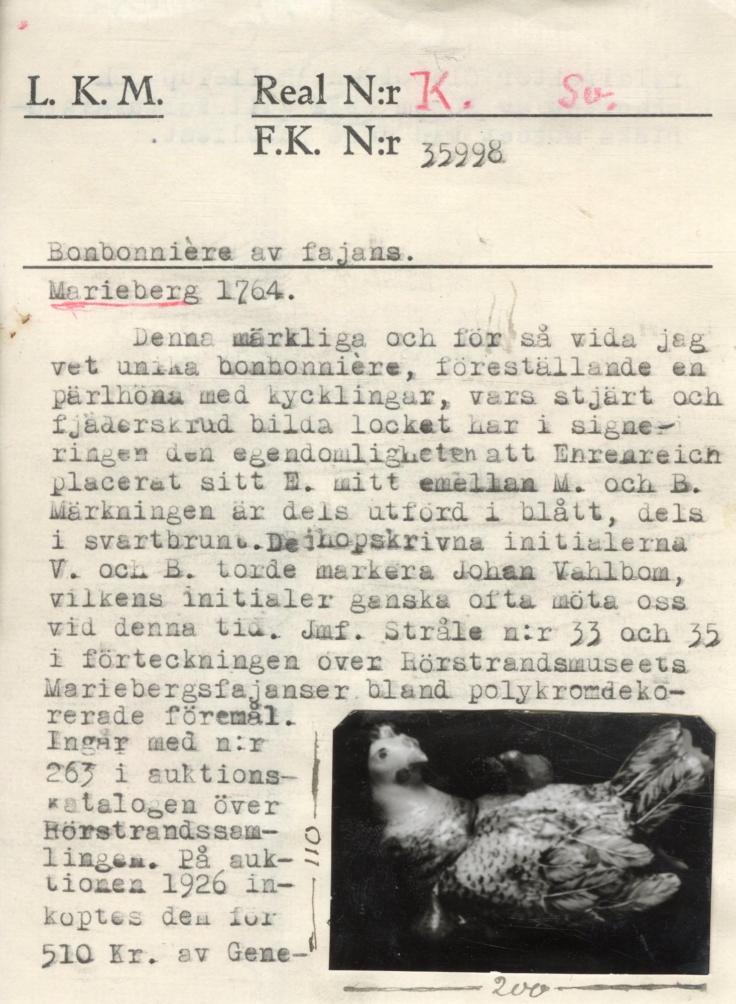 Tillverkad 1764 i Kungsholmen, Uppland, Sverige av Mariebergs porslinsfabrik.