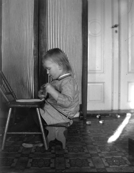 • Olle Romare, bra kort. (enligt text på förvaringsask). Hemmamiljö, Olle Romare som barn. 1900-tal.