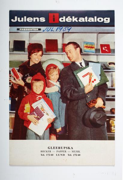 Broschyrer, julkataloger, 3 stycken; Julens Idékatalog, distribuerad av Gleerupska, Lund: 1959, 1960 och 1963. Samlad av givarnas mor för att användas i barnens lekaffär.