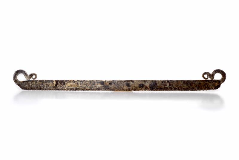 • Med tandad egg och uppsvängda handtag i båda ändar.