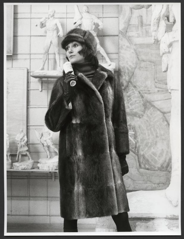 inomhus, kvinna, mössor, konst, päls, mössa, handske, helfigur, handskar, rock, pälsar, rockar, vinterkläder, kvinnor, statyer, staty