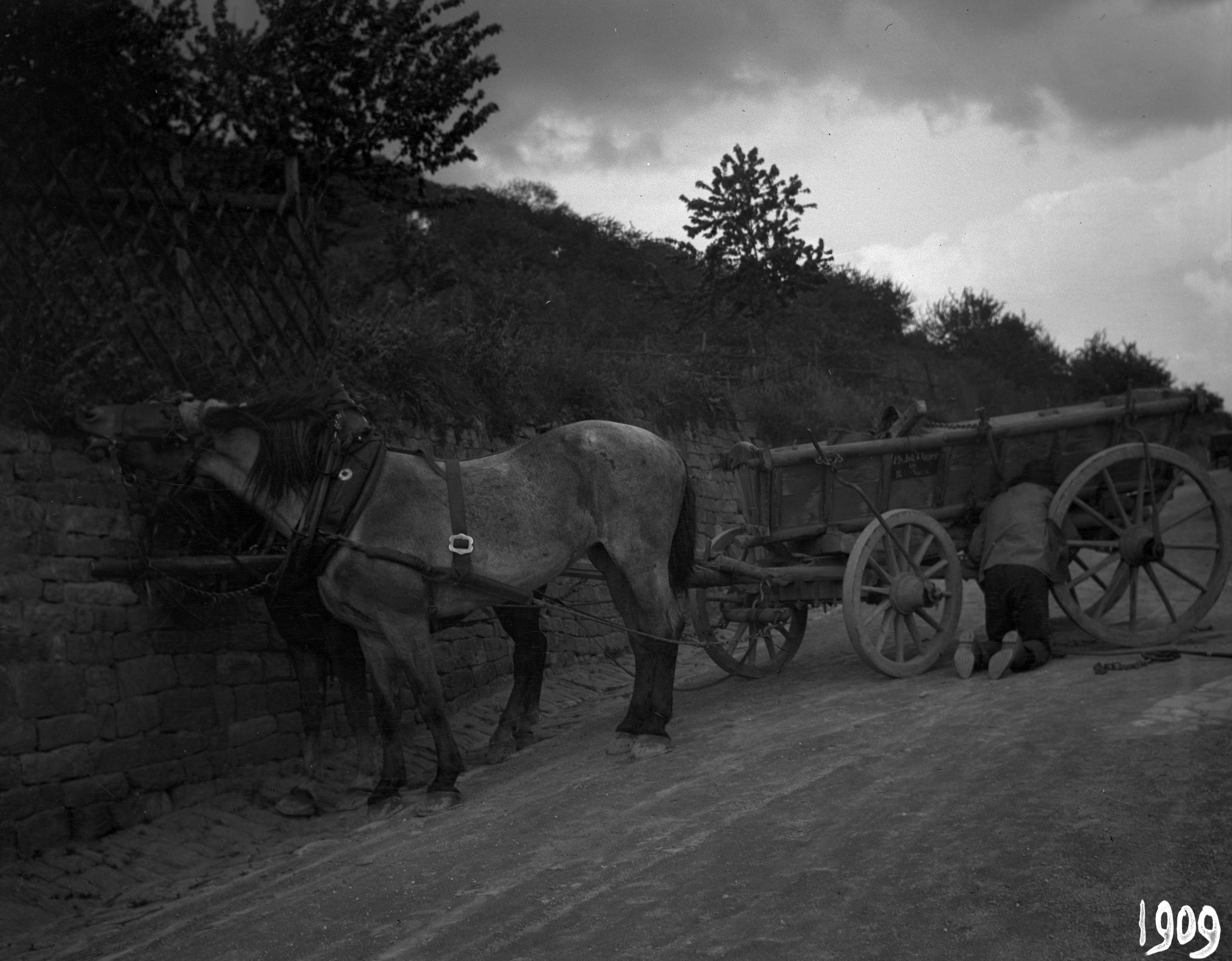 Heidelberg: Man reparerar hästvagn. 1909.Medium på originalet: Nitratnegativ sv/v 8x11 cm