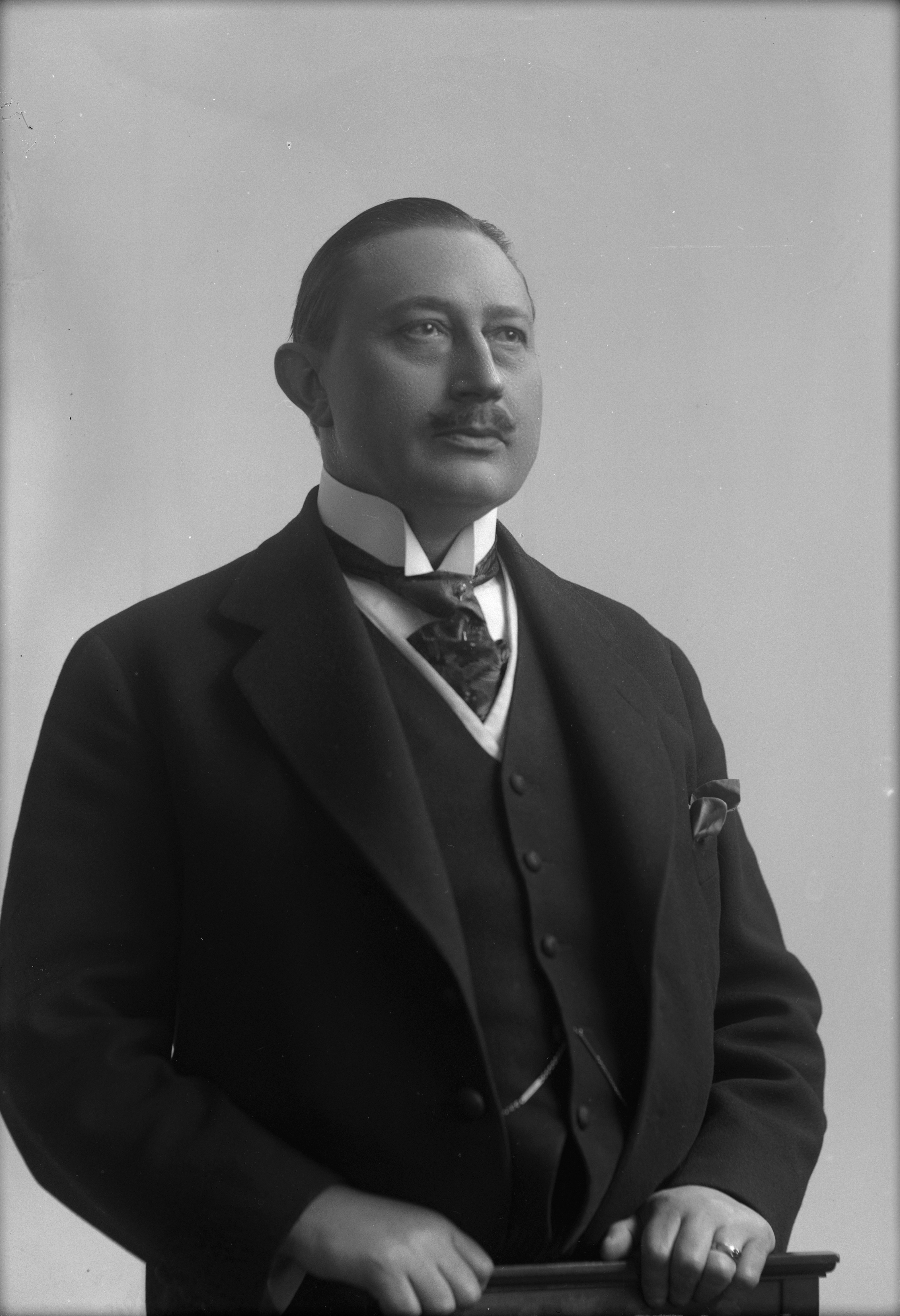 • Porträtt i halvfigur av grosshandlare Hansson.