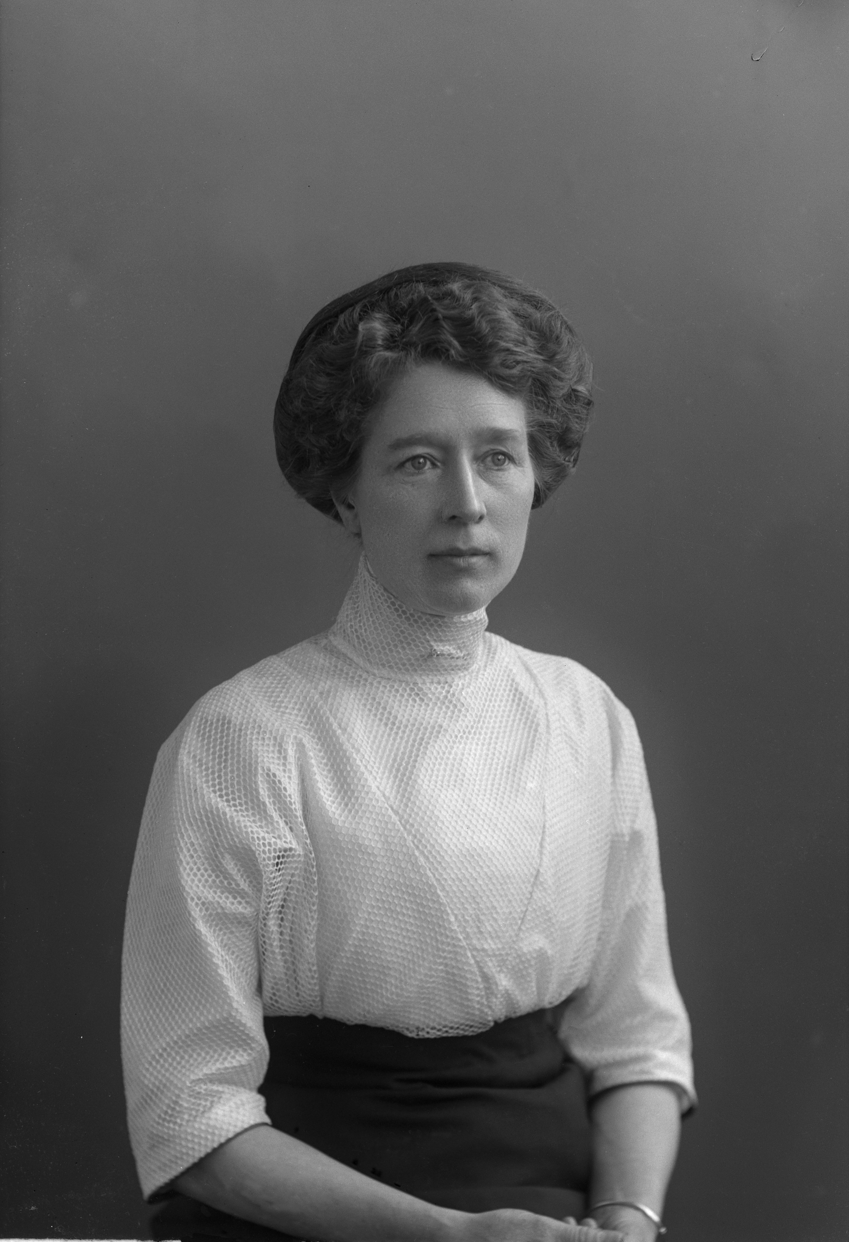 • Porträtt i halvfigur av handelsidkerskan Augusta Valdemarsson.