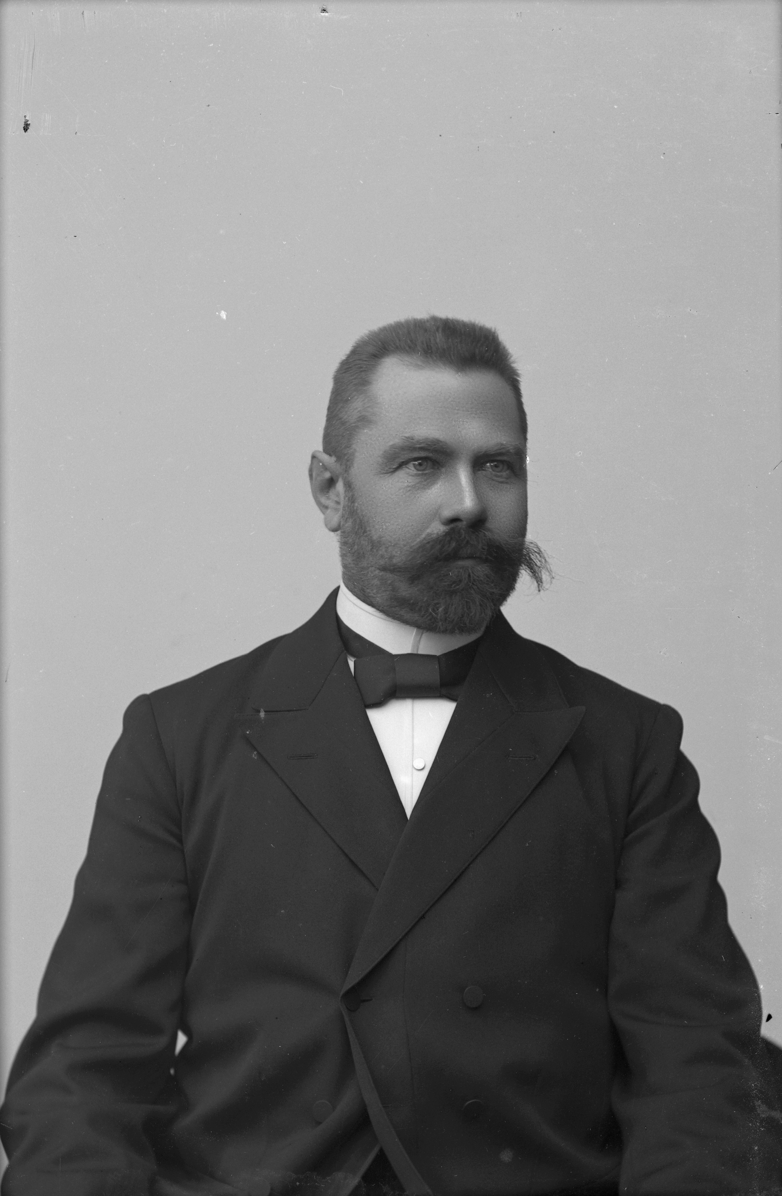 • Porträtt i halvfigur av stationsskrivare Palm.