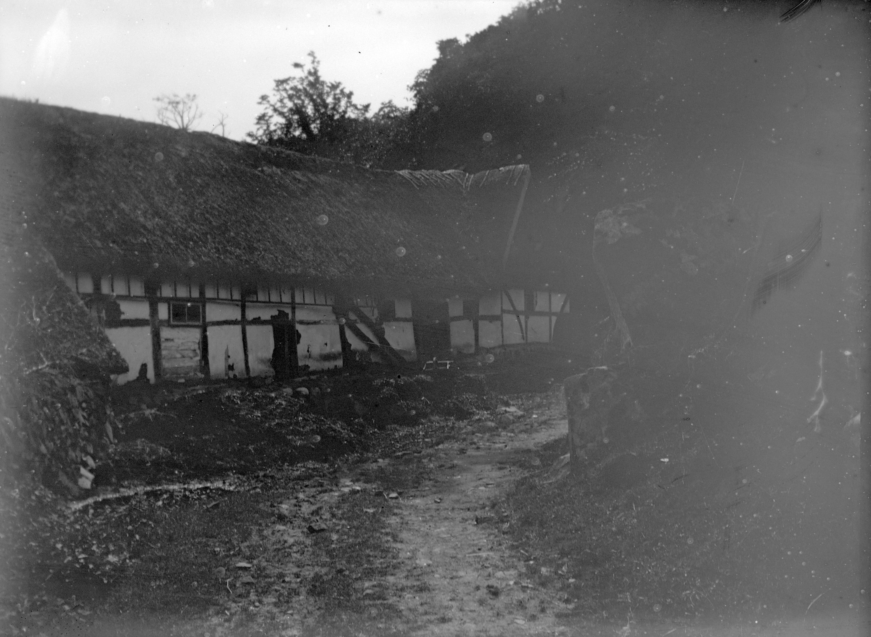 Bondgård int. 1905.Medium på orginalet: Glasplåt. 9x12 cm.