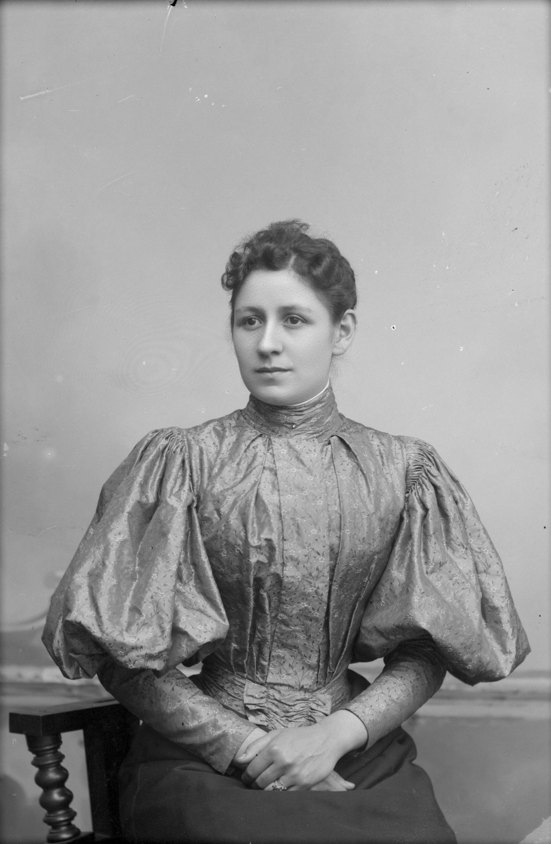 • Porträtt i halvfigur av Emilia Zinn, kontorist hos Evald Larsens Detaljvaruaffär.