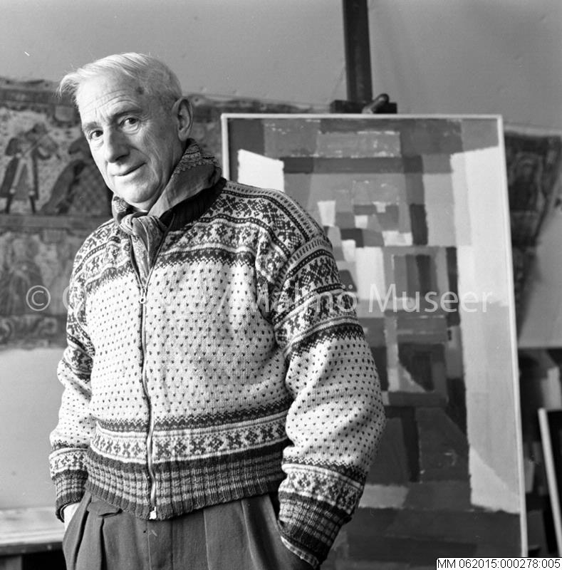 • Richard Björklund (1897-1974) målandes i sin ateljé, 1963. Bilden är tagen i projektet "I Närbild" som gjordes på uppdrag av Skånes Konstförening.