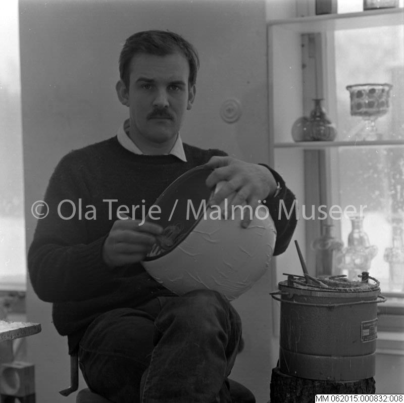 • Glaskonstnär Bertill Vallien i ateljén, Åfors, 9/1 1967.