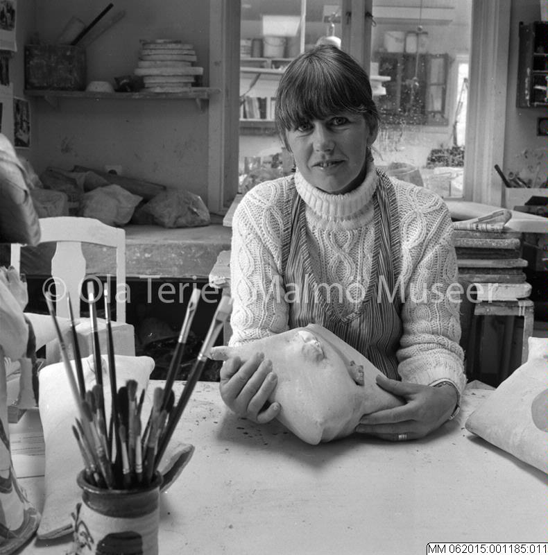 • Konstnären Ulrika Hydman Vallien med sin konst i ateljén i Åfors, 810525.