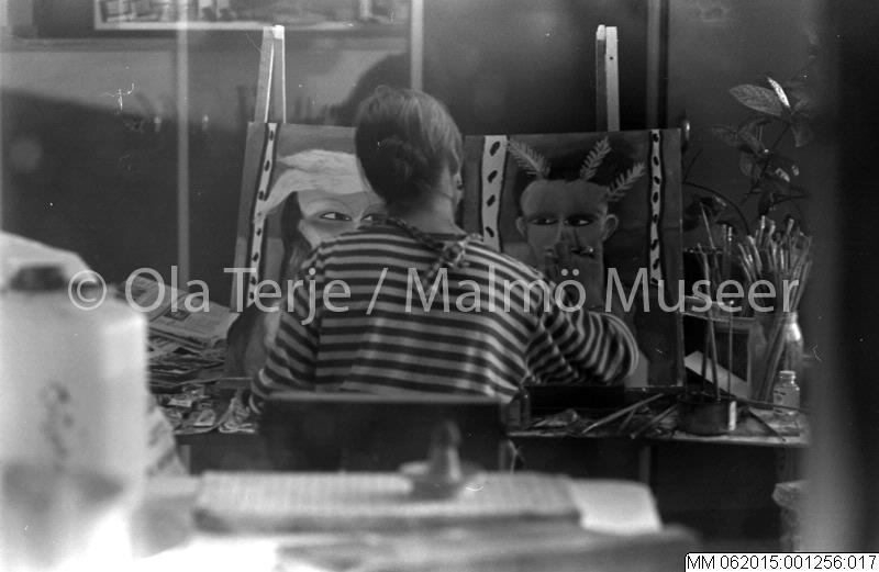 • Konstnären Ulrika Hydman Vallien målar i ateljén i Åfors, 820510.