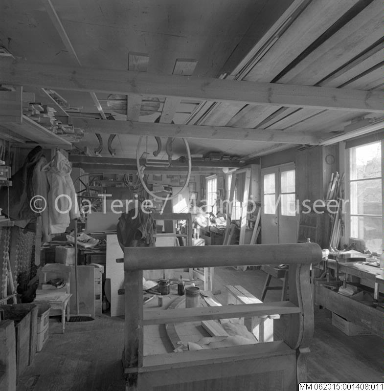 • I verkstaden hos möbelsnickare Gustaf Wallin på Ängö, Kalmar, 14/4 1970.