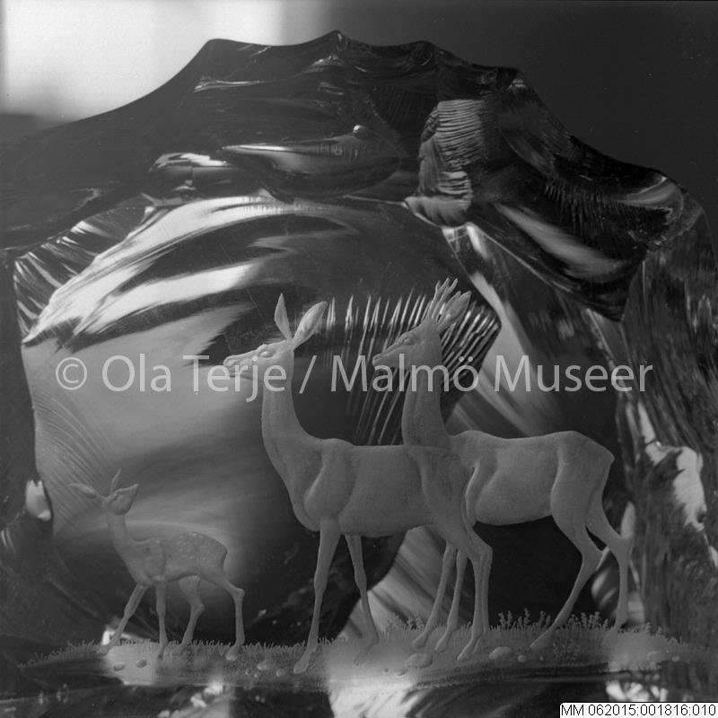 • Glaskonst, gravyr av rådjur, Boda Glasbruk 1970.