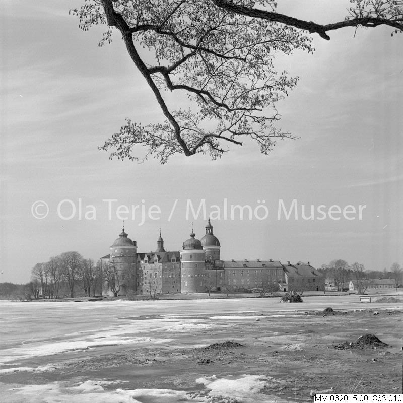 • Exteriör från Gripsholms slott vid Mälaren, sett på avstånd, 1966.