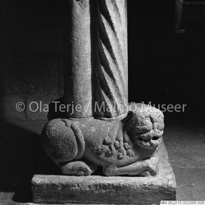 Interiör från Lunds Domkyrka, detalj från pelarfot. Foto beställda av Sveriges Radio och TV, för att ingå i boken "Människans boningar", som gavs ut i samband med en tv-serie av Katarina Dunér. 850617.