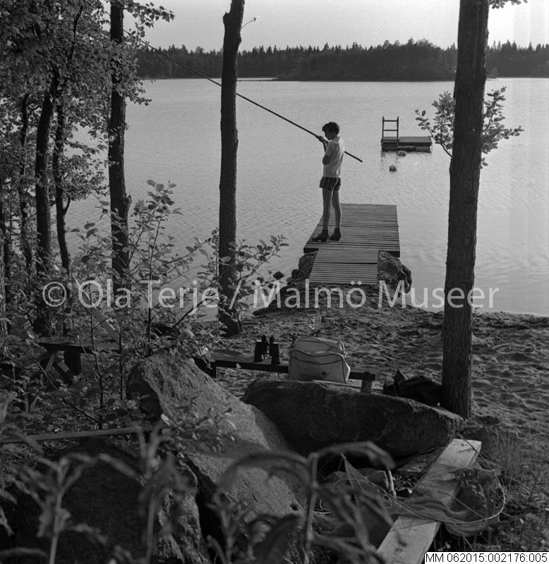 • Fiske vid bryggan vid Kässjö, juni 1969.