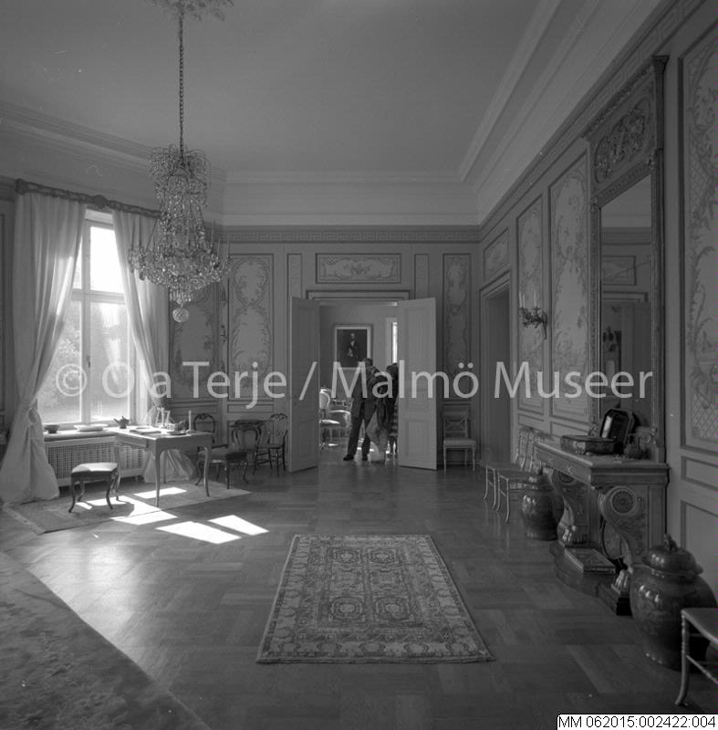 Interiör från Bellinga slott vid Ystad. Bilderna beställda av professor Sten-Åke "Stånke" Nilsson, konstvetenskapliga institutionen i Lund, för ett bokprojekt om 1800-talets ombyggnader och renoveringar. 860530.
