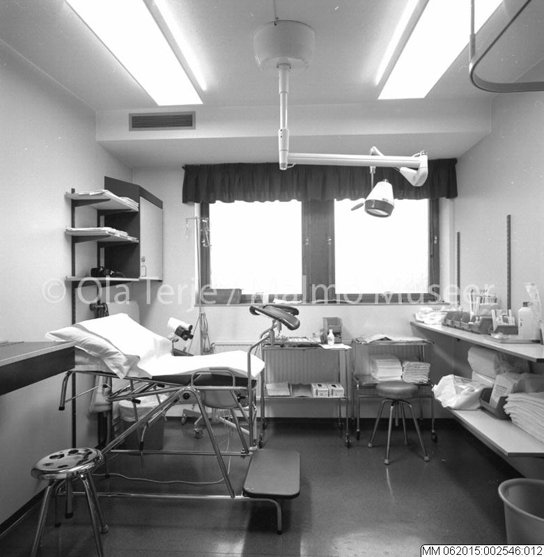 • Onkologiska kliniken vid Lunds Lasarett, behandlingsrum på gynekologimottagningen. 880216.