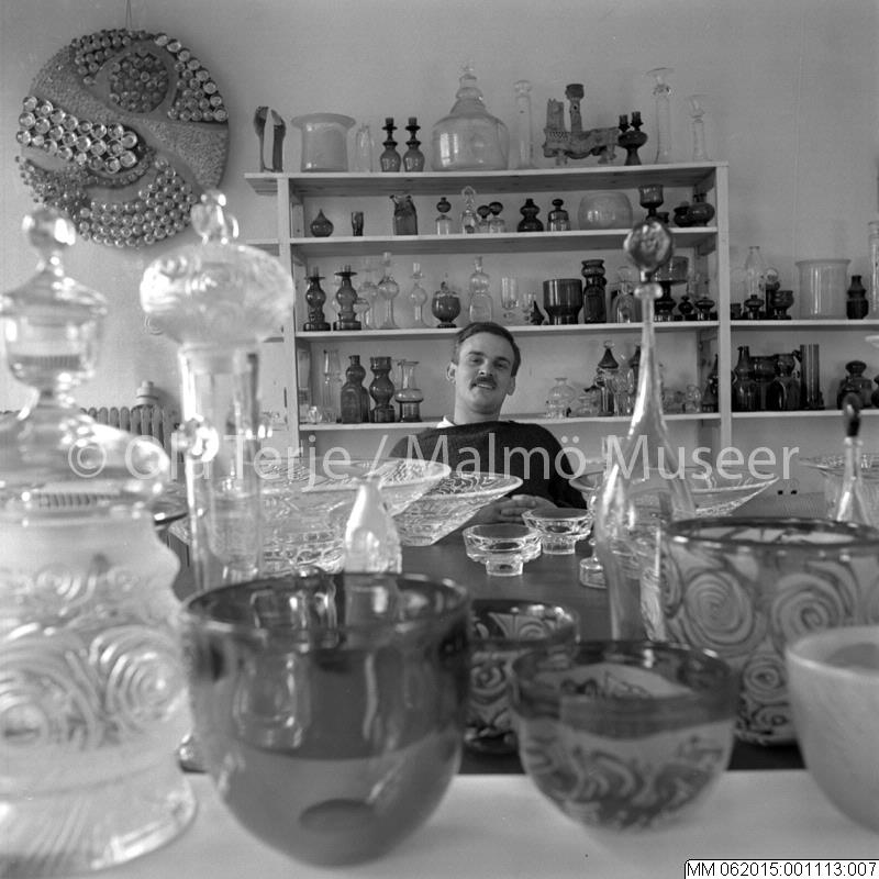 • Glaskonstnären Bertil Vallien i ateljén, Åfors 650827.