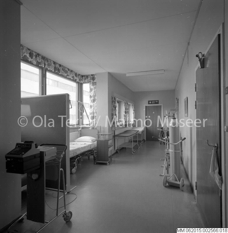 • Onkologiska Kliniken vid Lunds Lasarett. Dokumentation av lokaler och verksamheter. 1988. Avdelning 86. Korridor.