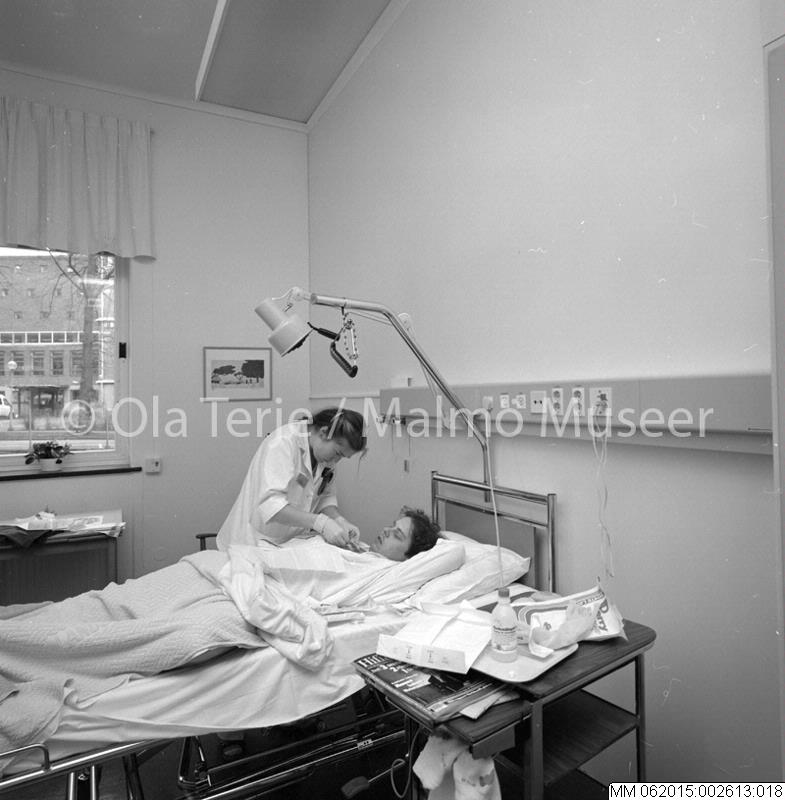 • Onkologiska kliniken vid Lunds lasarett. Dokumentation av lokaler och verksamheter. 1988. Avdelning 88. Vårdrum.