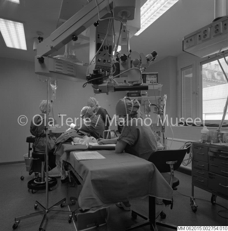 • Ögonkliniken vid Lunds Lasarett. Dokumentation av verksamhet och lokaler. 1990. Ögonoperation.