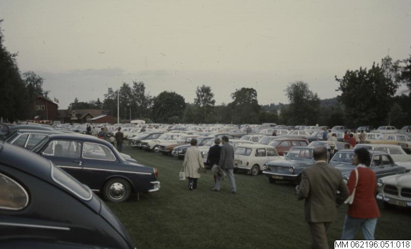 gräsplan, 1970-tal, person, män, parkering, hjortnäs, människor. människa, kvinnor, fordon, dalarna, man, gräsplaner, personer, kvinna, parkeringar, leksand, bil, bilar