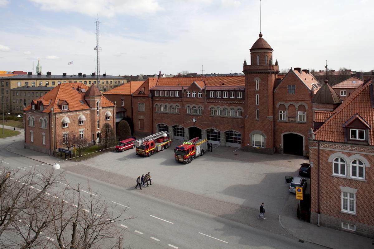 brandkår, brandbil, brandstation, Centrum, Malmö, gata, gångtrafikanter
