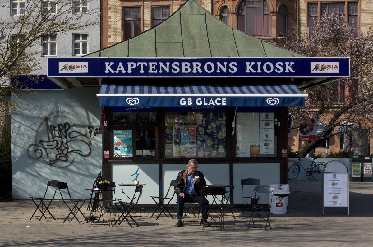 Kioskerna. Konkurrensen om snabbätarna har hårdnat sedan den tid då en tjock korv med räksallad var en kulinarisk sensation. Men kioskerna håller ännu luckorna öppna och har i många fall blivit en del av det lokala kulturarvet. En vårstrut hos Rönneholmsglass, till exempel, är en Malmöklassiker. Och kiosken vid Kaptensbron har väl alltid funnits. Och skulle inte Triangeln vara tomt utan sin kaffepaviljong. Och kinakäk i kiosk, är inte det just vår tids grillad med mos, så mainstream det kan bli. Som gjort för Gustav, torget mitt i stan. (Ur Dokument Malmö). Tidigare namn: Kaptensbrons kiosk_2066