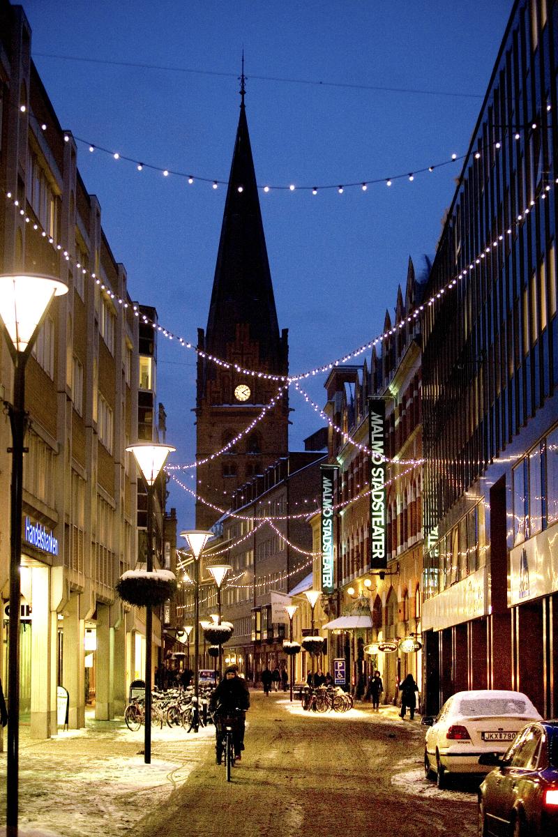 Kalendegatan och S:t Petri kyrkan i vinterskrud.Tidigare namn: Kalendegatan_7549