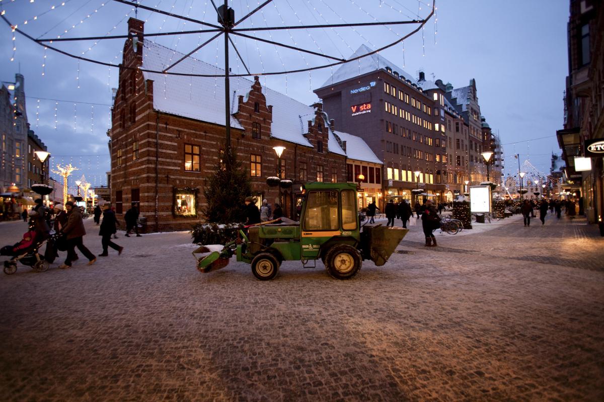 Snöröjning framför Flensburgska huset på Södergatan.Tidigare namn: Södergatan_0243