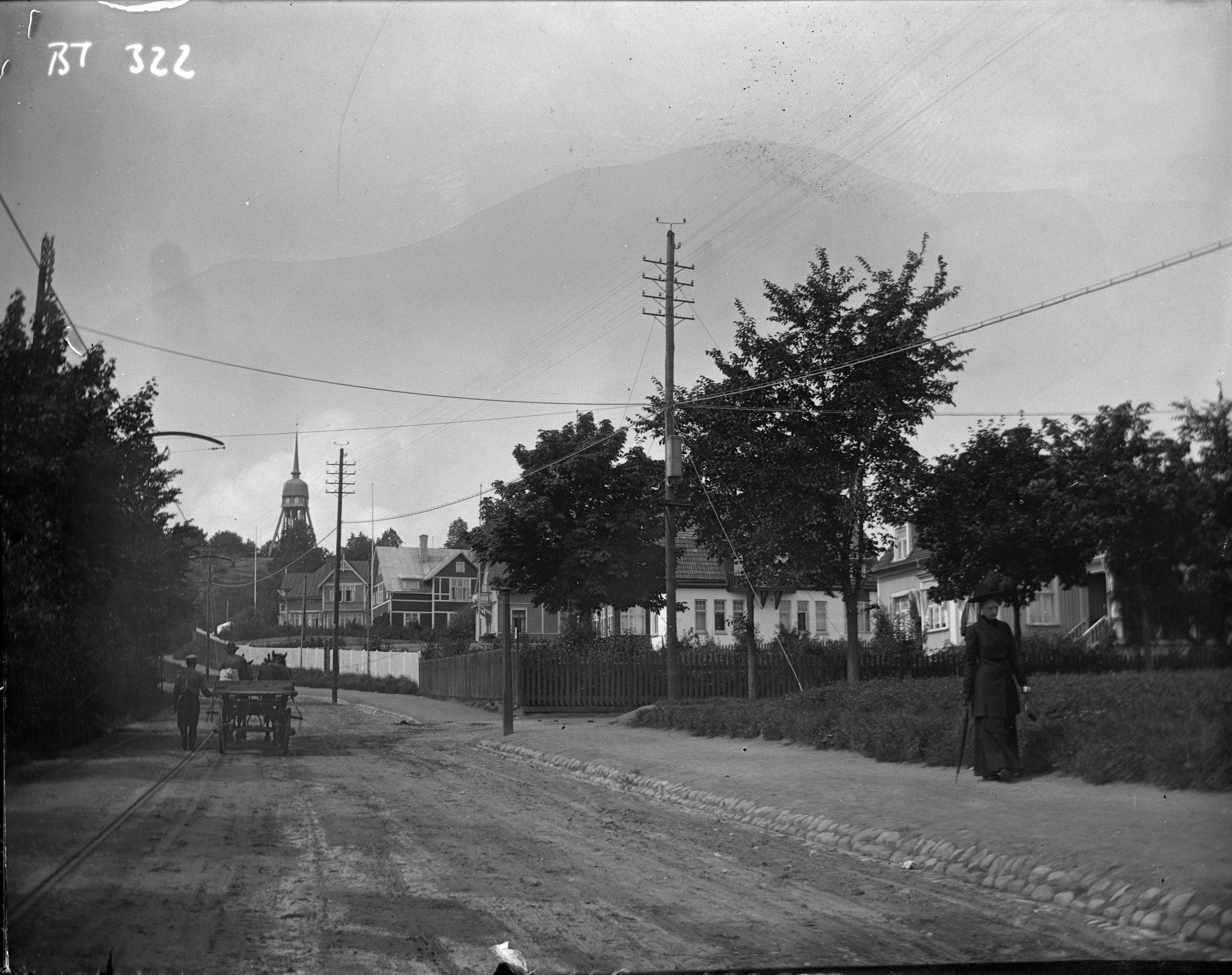 1910. En hästvagn på en bygata.Tidigare nummer: BT 322.