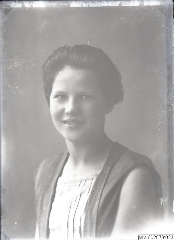 • Porträtt på Agda Nilsson. Med negativ fanns datumblankett med skriften "Agda Nilsson, adr: Storg. Östersund". Datum okänt.