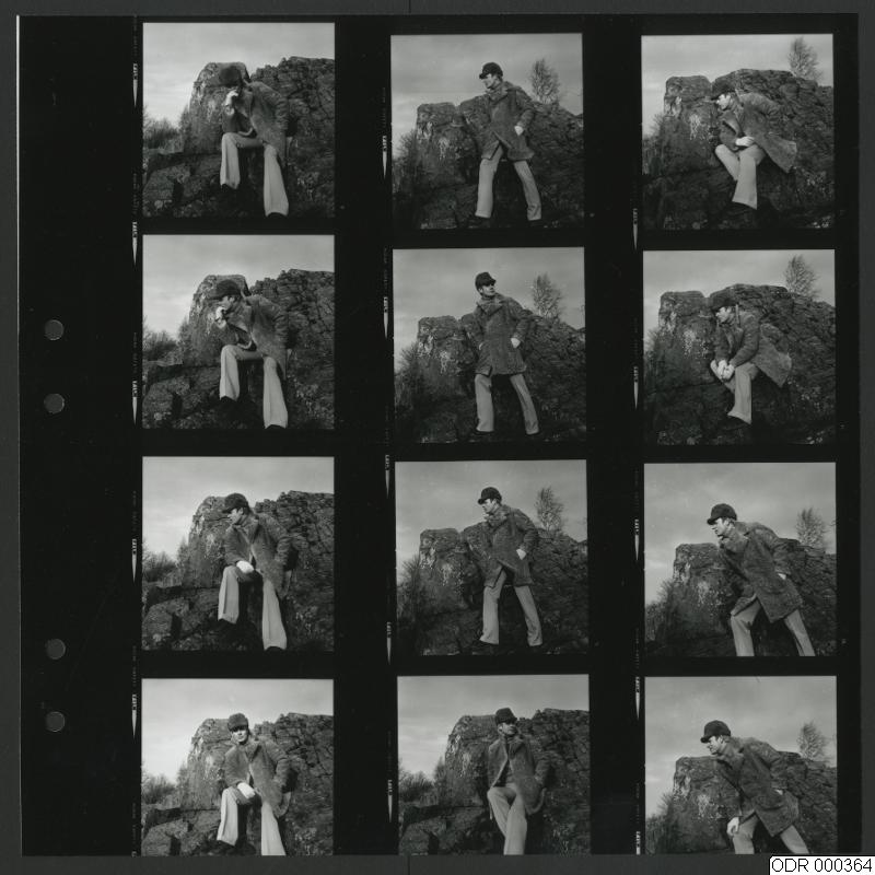 • Modell utomhus. Man i pälskappa och pälsmössa.