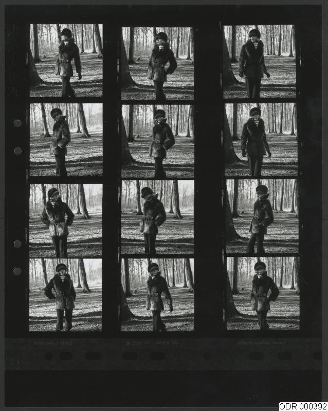 • Modell utomhus. Kvinna i pälsjacka och pälsmössa.