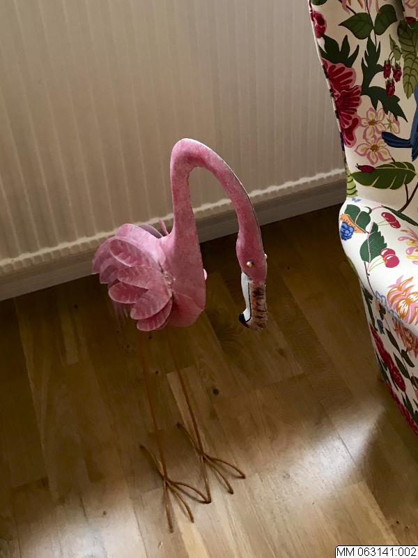 • Flamingo i vardagsrummet. Flamingon är köpt i en affär i Falun. Bilden är tagen av Solveig Lindkvist.