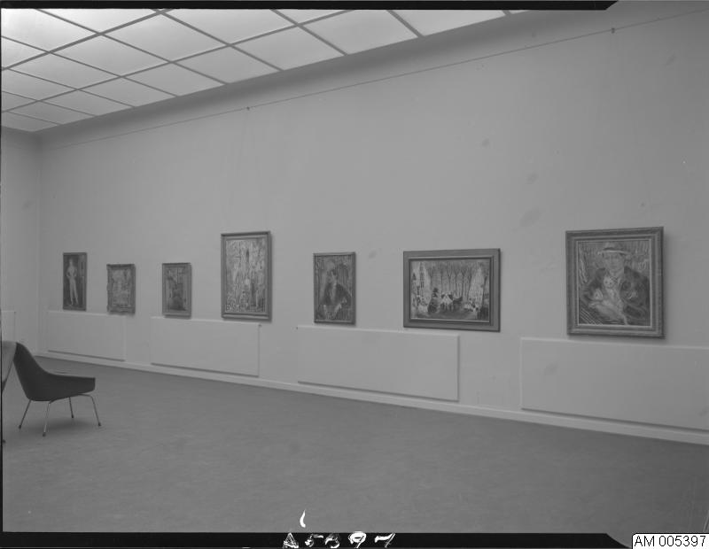 Bild som visar Nils Dardel utställning 16 november-18 december 1963. Tavlor och stolar.Foto taget på Malmö museum.