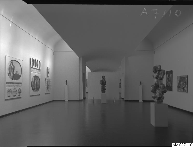 Bild som visar Aura 40 år, jubileumsutställning i Malmö museum mars-april 1968.Tavlor och statyer.