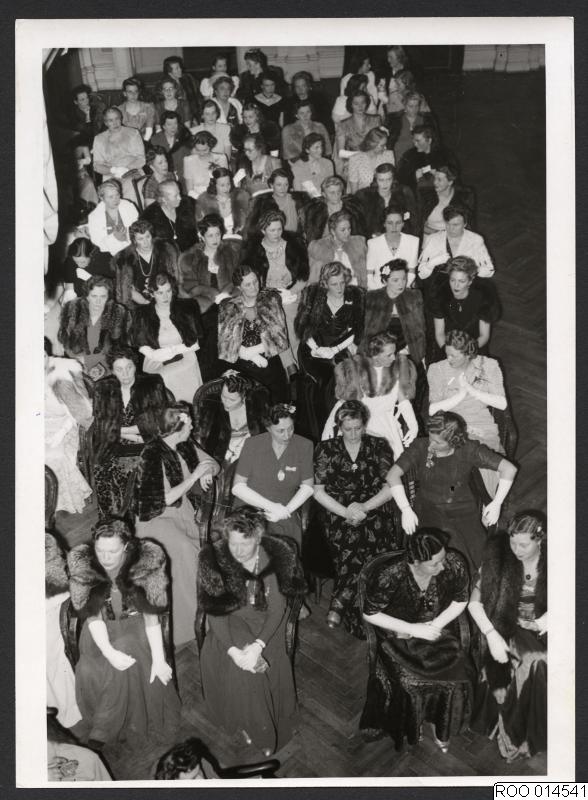 knutsgille, 1944, årshögtid, 1940-tal, högtidskläder, damer, lund, bänkrader, årshögstider, bänkrad, dam, knutsgillen
