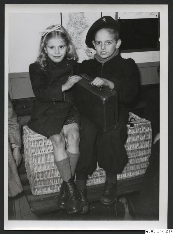 • Inomhusbild som visar belgiska barn som kommit till Sverige. Idag anlände, med en extra färja, till Malmö 223 belgiska barn med 29 vårdare. Barnens kondition tycktes vara sämre än de förut anlända. Efter 8 dagars karantän ska barnen utplaceras i svenska hem för att under vintern återvinna hälsa och krafter.