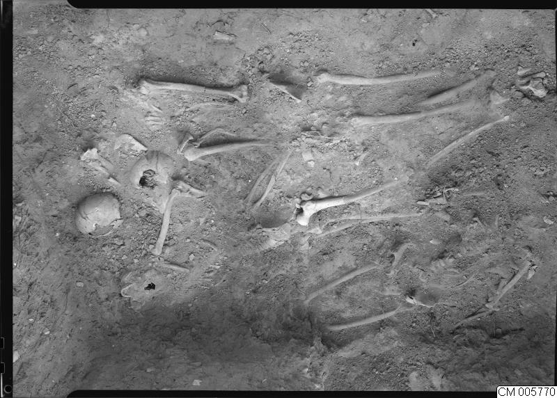 Bild som visar Malmö, Norra Vallgatan, grundgrävning. Skelettfynd.1953.