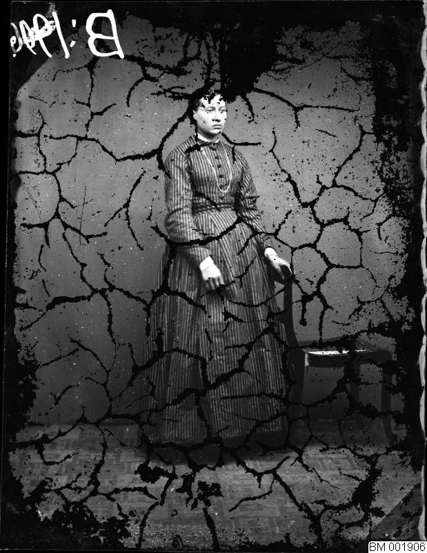 Plåtsamling från Ängelholmsfotograf. Porträtt. Stående dam. Klädd i klänning. Helfigur.1946.