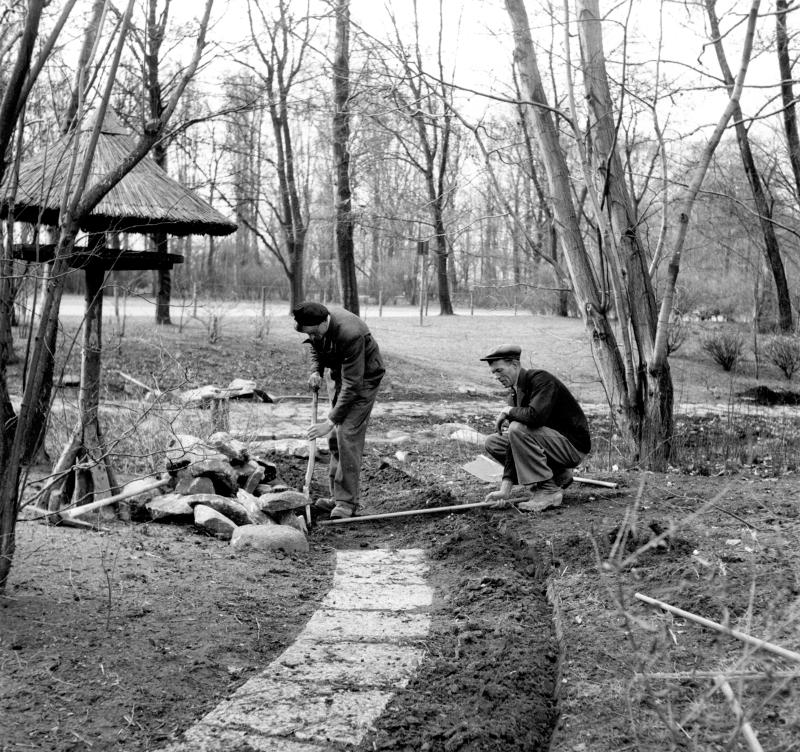 män, park, slottsparken, kärret, parkarbetare, markarbete, man